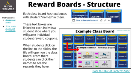 With this editable Google Slides file, you can create and post a bank of reward coupons for each student using linked slides in a classroom reward board. This classroom management system helps you organize your students’ rewards easily and accessible to them 24/7. Each class board has student name text boxes, linked to individual student slides where the group of individual student reward coupons live.